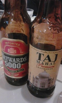 HAYWARDS 5000 は、甘みがあってちょっと面白い味でした。色は黄金色だけど、黒ビールみたいな味わい。TAJ MAHAL は、普通のさっぱり系でした。