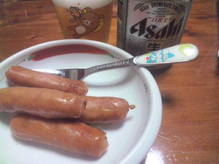 …と思い冷蔵庫にあったウインナーをレンチン♪