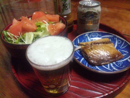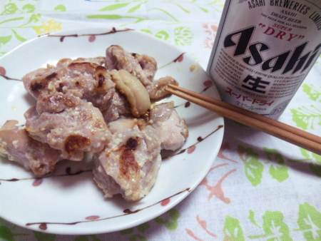 鶏肉の塩麹焼きをアテにスーパードライ。