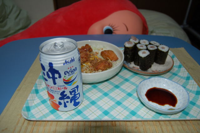 細巻き寿司100円、鶏竜田揚げ50円、キャベツミックス50円。全部足してもオリオンの方が高い。ううむ。