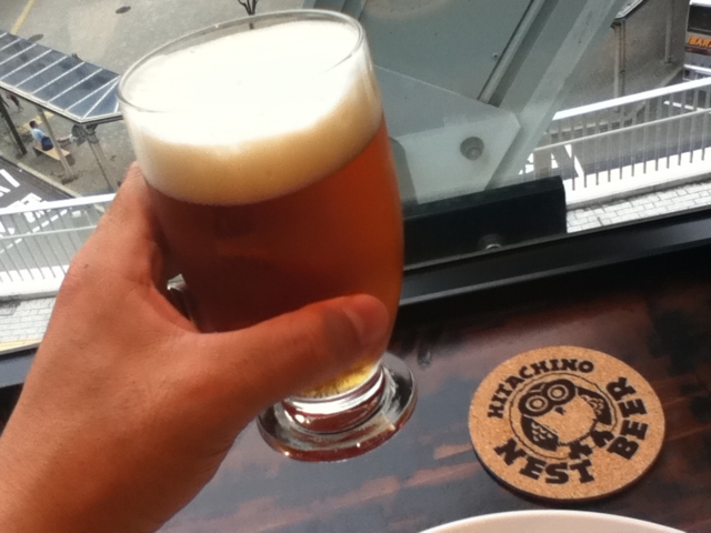 常陸野ネストビール、二杯目はペールエール。独身時代、カミさんとのデートは、東京半分・水戸半分。思い出の水戸新県庁口に乾杯。