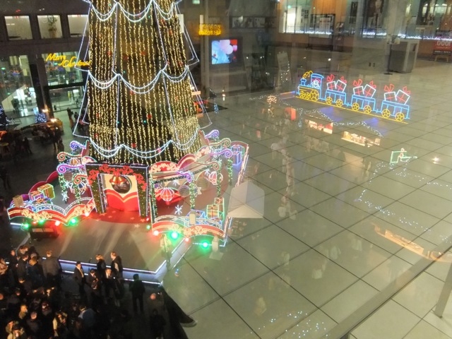 ドイツクリスマスマーケット大阪、コンビニ前売券(1700円)は、ホットワイン(カップ付き)、ソーセージorスープ、空中庭園観覧券のセット。ぼくのような観光客向け?今日が初日で、12月25日まで。