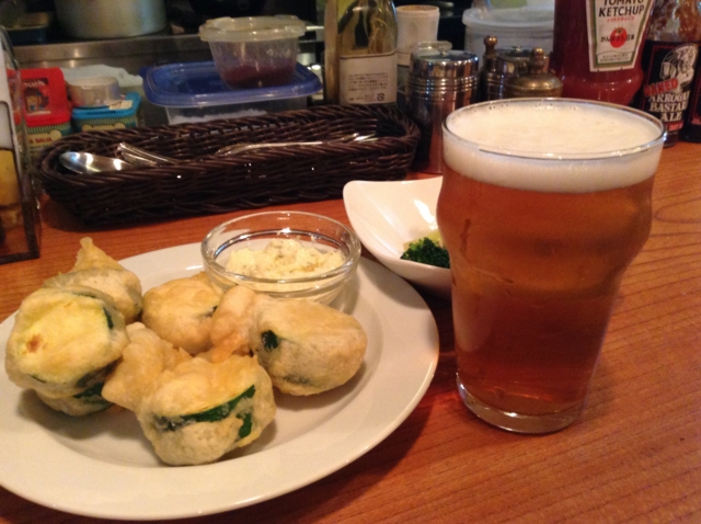 揚げたてズッキーニと、サンクトガーレンのゴールデンエール。