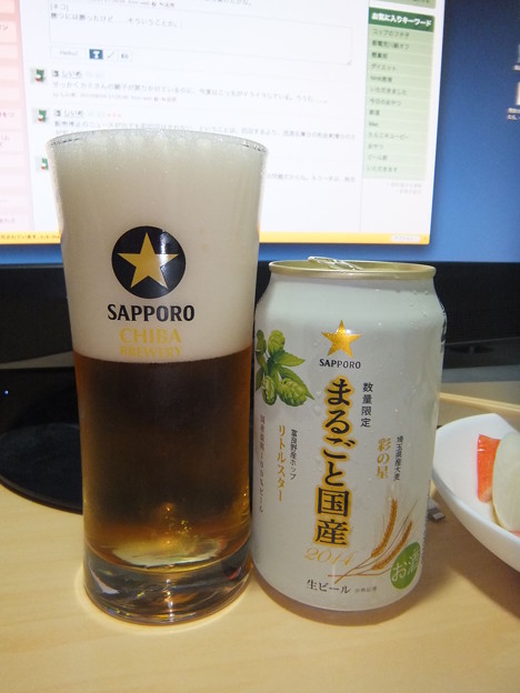 1杯目は、サッポロに敬意を表して。4月に飲めなかった「まるごと国産」。