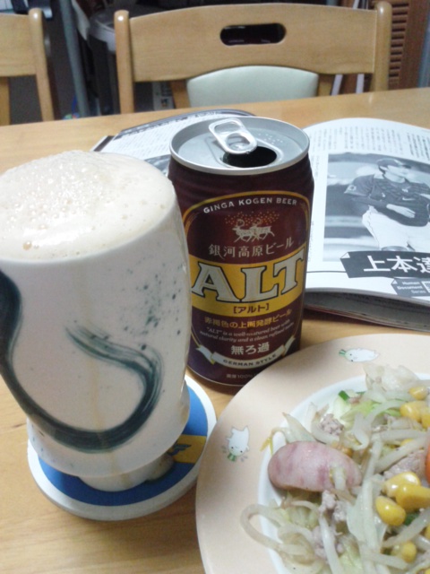 久しぶりにブローリー(アルコール0.9%の、旧世代低アルコールビール)を。
