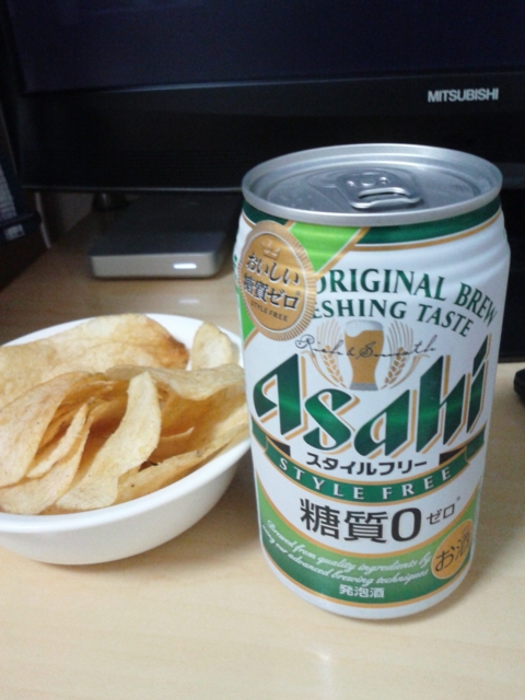 鉄板ナポリタンスパゲティ味のポテトチップスと、スタイルフリー。