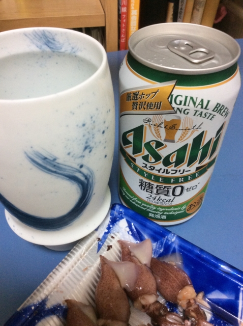 カミさんが、勝手に瓶を冷蔵庫の野菜室に移していたから、あまり冷たくない。けど、それくらいの方が合うかも。
