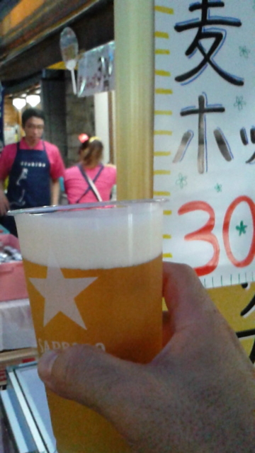 その前に、商店街の酒屋で、麦とポップの樽生。新ジャンルでも、注ぎたてなら後味のエタノール臭が気にならない。
