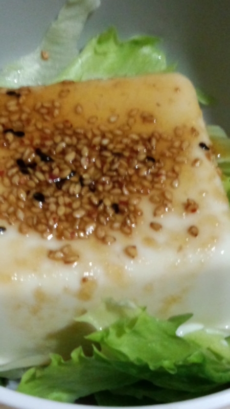 アテは冷や奴 レタスと八幡屋磯五郎の七味ごまをいっぱいかけて、ポン酢で食べるのがマイブーム