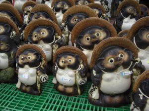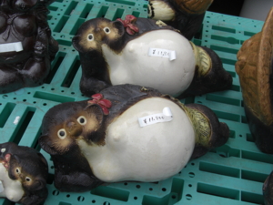信楽焼の狸。 女の子もいるんだね!