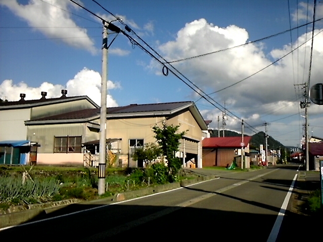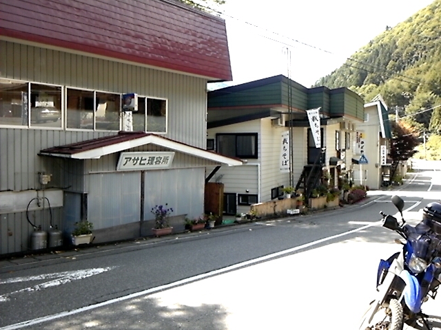 霧降高原道路を抜けて大笹牧場で冷えた足がつりそうになり、川俣檜枝岐林道を抜けて檜枝岐のアサヒ理容所前に来ました。