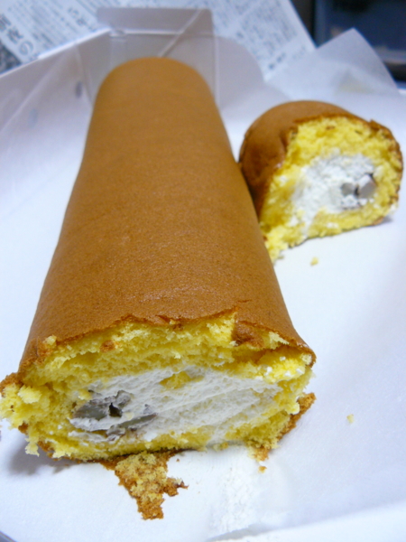 晩御飯前ですが、ブルーマウンテンというお店のロールケーキを...。