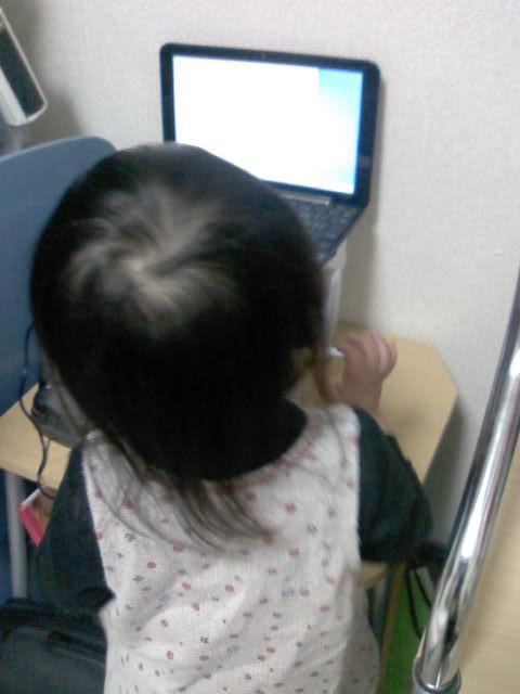 ぼくのパソコンの、ディスプレイ・マウス・キーボードが替わったことに気付いた、娘1歳8か月。