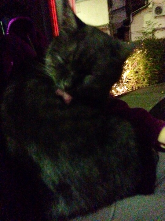 話し掛けたら膝に乗られたので、そのままベンチまで運んで一緒に座ってますw