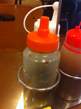 ココイチでドレッシングのキャップを根元から外してしまって、サラダとテーブルがノンオイルドレッシングまみれに。店員さんに平謝りしました。