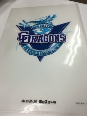 2010年に中日が優勝した記念の中日新聞のクリアファイルでした。