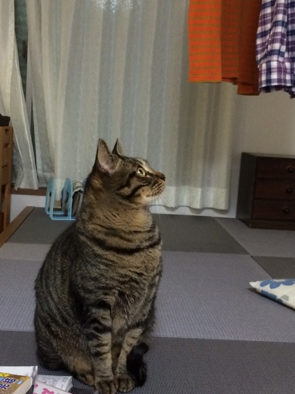 夕方に帰宅してからずっと姿を見せていなかった猫が、今やっと起きてきました。