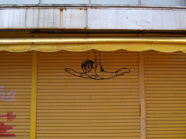 店舗の2階窓からは大門さんが。五年前の携帯で撮ったやつ。