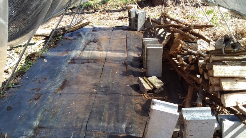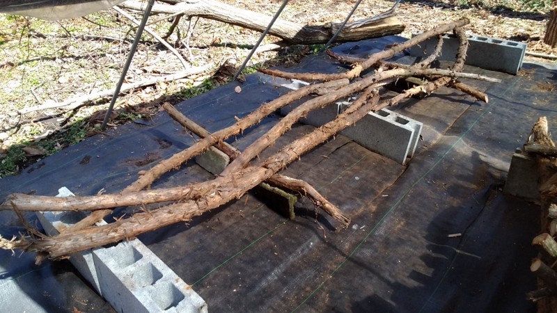 ブロックも置き直して、棚をスギの枝で組み直します。スギは虫が入らないので。
