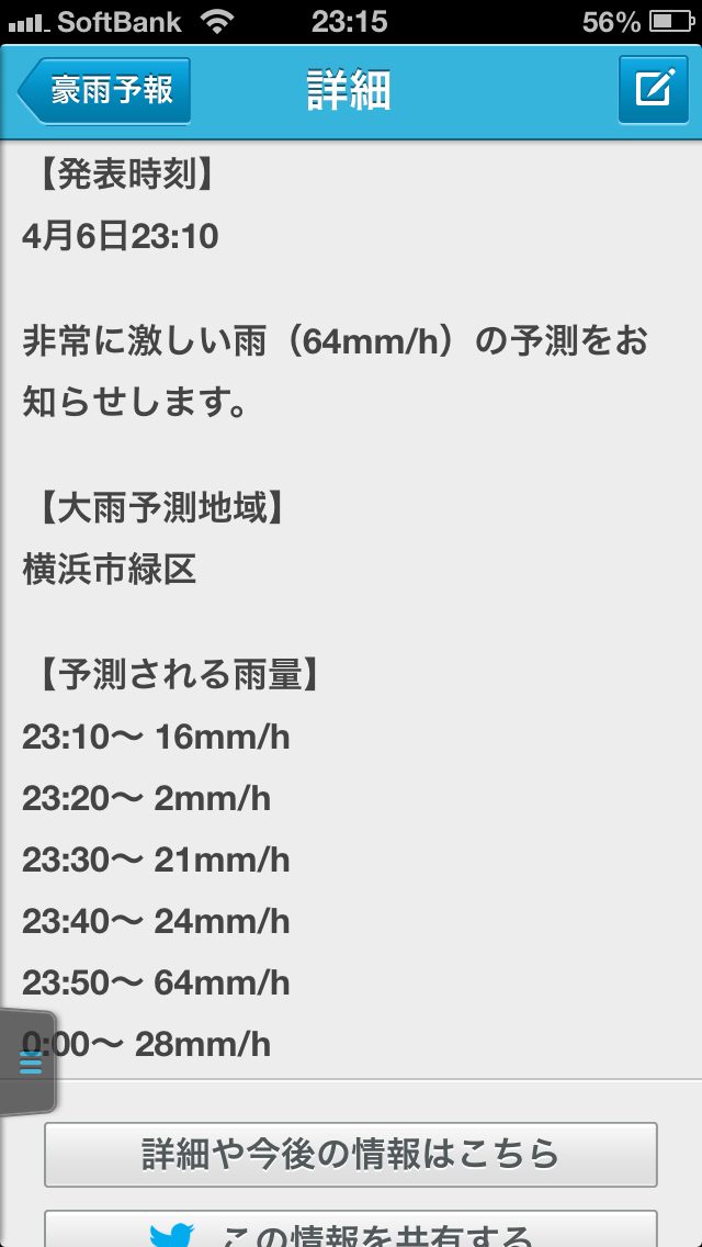 自分の住んでいる地域は一時間に35mmも降っているらしい。