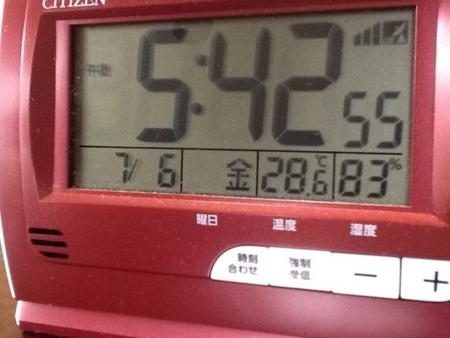 音がやかましいし、飛沫が入りそうなので窓を閉めたら暑い。エアコンを入れた。