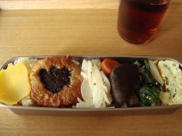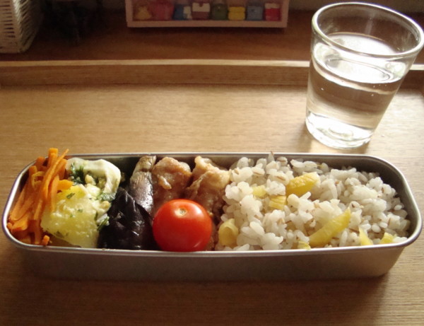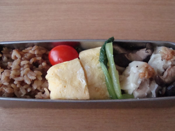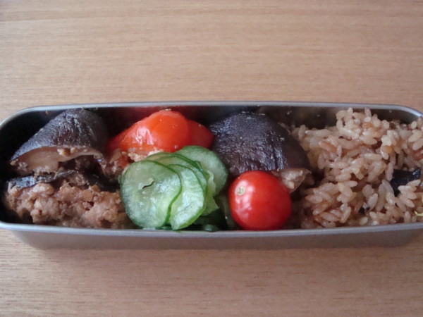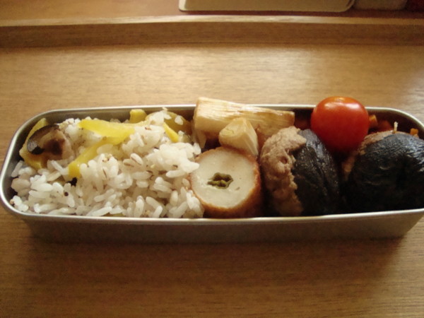 昨日は茸ご飯と椎茸の肉詰め弁当でした。野菜は下に埋まってます。