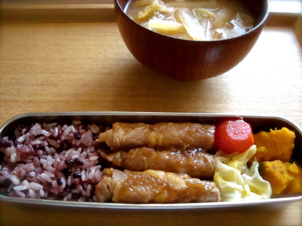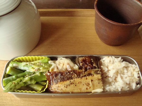 さんまのマイタケ巻き、卵焼き、アスパラ、かぶと人参の味噌ヨーグルト漬け、ひじきと豆のサラダでした。さんまのまいたけ巻きは、普段はいわしでやってるんですけど、さんまもありだなって感じでした。でもまあ、さんまは普通に焼くのが一番ですけども。なんか昨日は普通に焼きたくなかった。