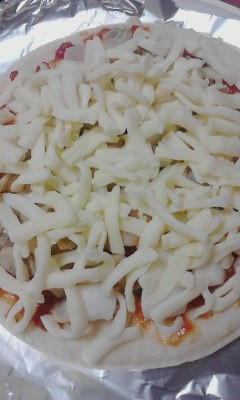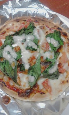 注:出来合いのピザ生地で、参加者ふたりです。