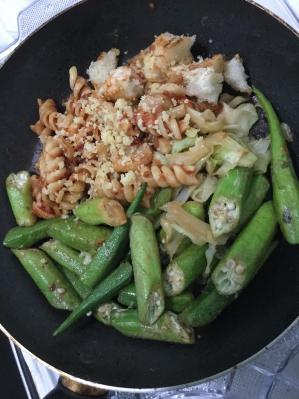 変わり映えのないメニューだと思いながら、写真を撮るでござる。こんなにもオクラを炒めて食べる人生になるとは思いませんでした。