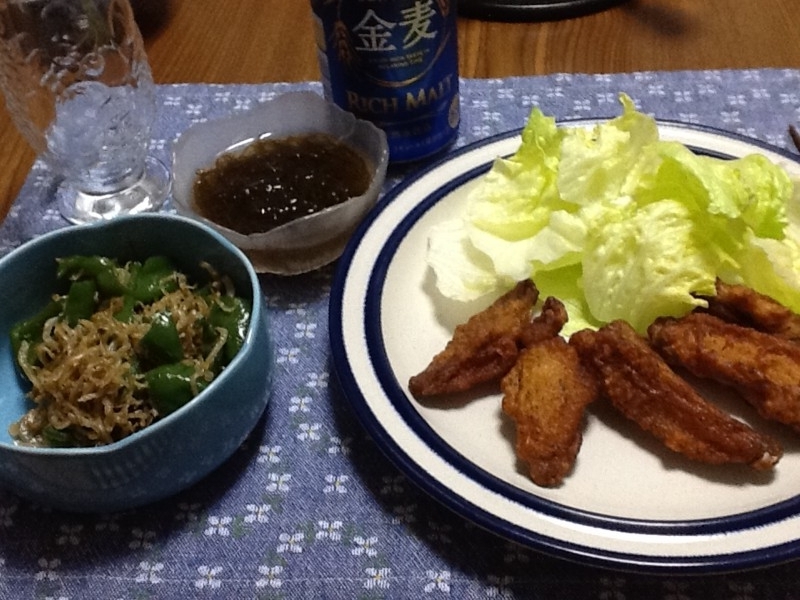 きゅうりもみは、ちりめんじゃことワカメを入れることが多いけど、ワカメを戻すのが面倒だったので代わりにとろろ昆布を入れてみた。意外と美味しい。