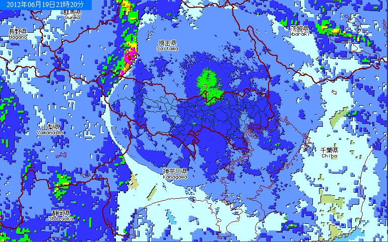 こう言う状態、戸田だかの辺りに濃い部分があって、そこを中心に円形が見える状態がずっと続いてるのだが、