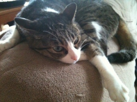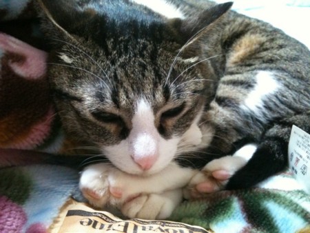 この子は多分鯖トラっていう柄なんかな(友達が拾ってきた猫やからいまいち分からない)