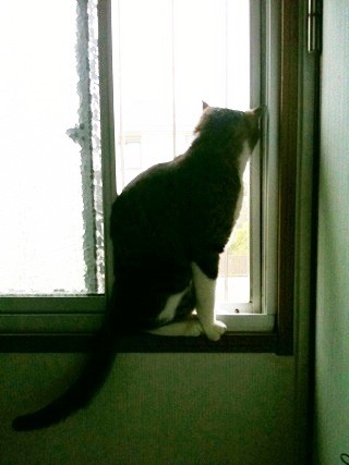 通勤ルートの家からサラリーマンを見下ろす猫さん。こないだは写りが小さ過ぎてidページおくりやったけど