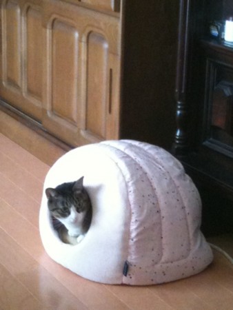 最近は、人間のお母さんと同じまくらに頭をのせる上にお母さんの方を向いて寝てるらしい。