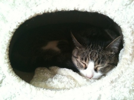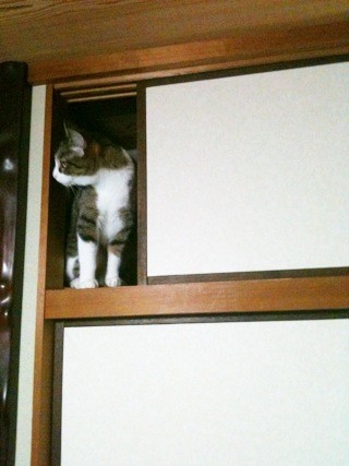 この後猫は、天袋の戸の向こうにある衣装ケースの上でくつろいでいたのですが