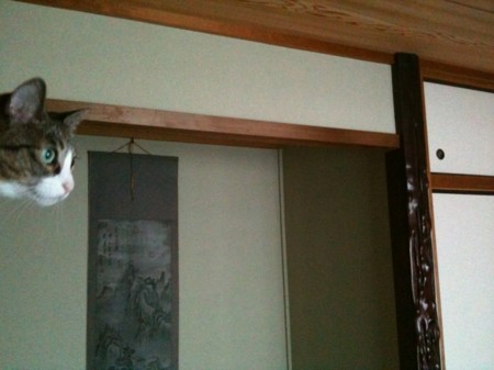 どうやら天袋のようですが、開いていないためお母さんヘルプを要請している模様です。