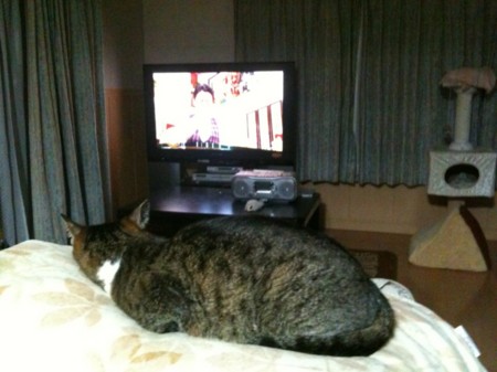 ほんまに観たい時はテレビの真ん前に陣取ります(ど近眼)