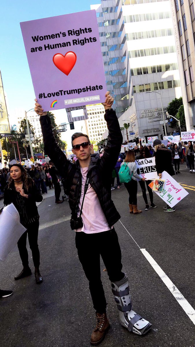 怪我で全米を欠場したアダム・リッポンがWomen's Marchに参加していた。