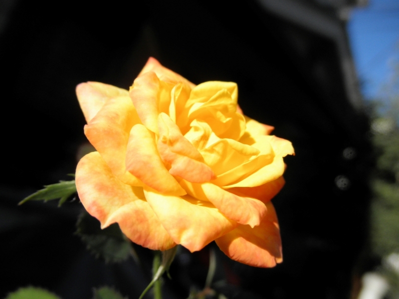 ミニバラの「ネプチューン・オプティマ」、昨日まで黄色かったと思うのですが、強めの紫外線で花びらのふちの方から、少しオレンジ色に変化してます。