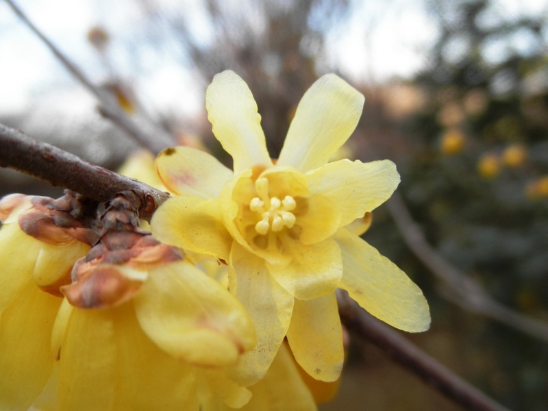 ソシンロウバイ。今月はこの花ばかり撮ってるので、今回は逆光で。