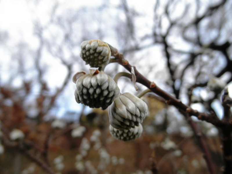 ミツマタのつぼみ。面白い形なのでつい撮ってしまう。