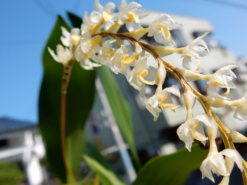 昨年買ったデンドロキラム「Dend. cobbianum」が開花中です。