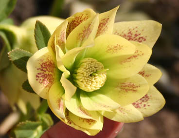 花弁がクリーム色で花弁の先がピンクの覆輪咲き