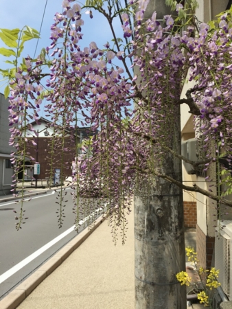 4月25日に天橋立の駅前通りを歩いていたら、突然、藤の花が!