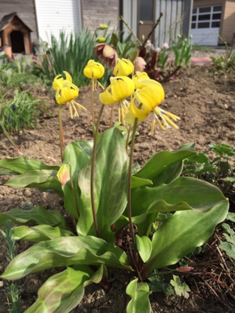 黄色いカタクリが咲きました。園芸店で知り合った人にもらいました。