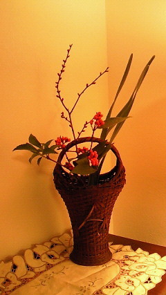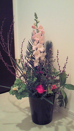 農産物直売所で適当に安い花と松(1本50円)を選んで生けてみました。