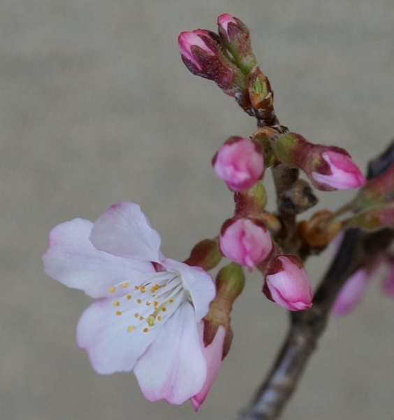 裏の林に植えてある桜が、何輪か咲き始めました。