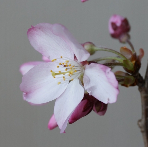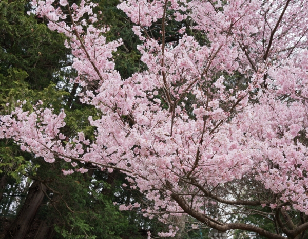 裏の林に植えてある桜の花が、何輪か咲き始めました。