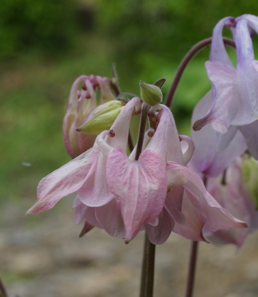 庭のすみで、「ピンク色のおだまき」の花が咲き始めました。