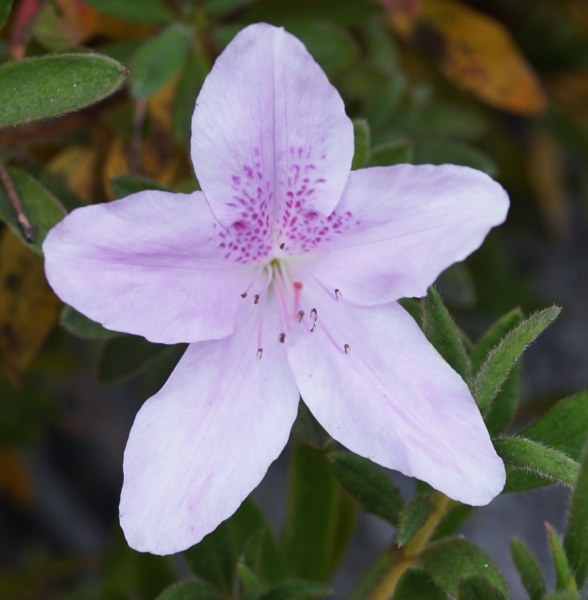 隣の庭に、「季節はずれのつつじ」の花が咲いています。